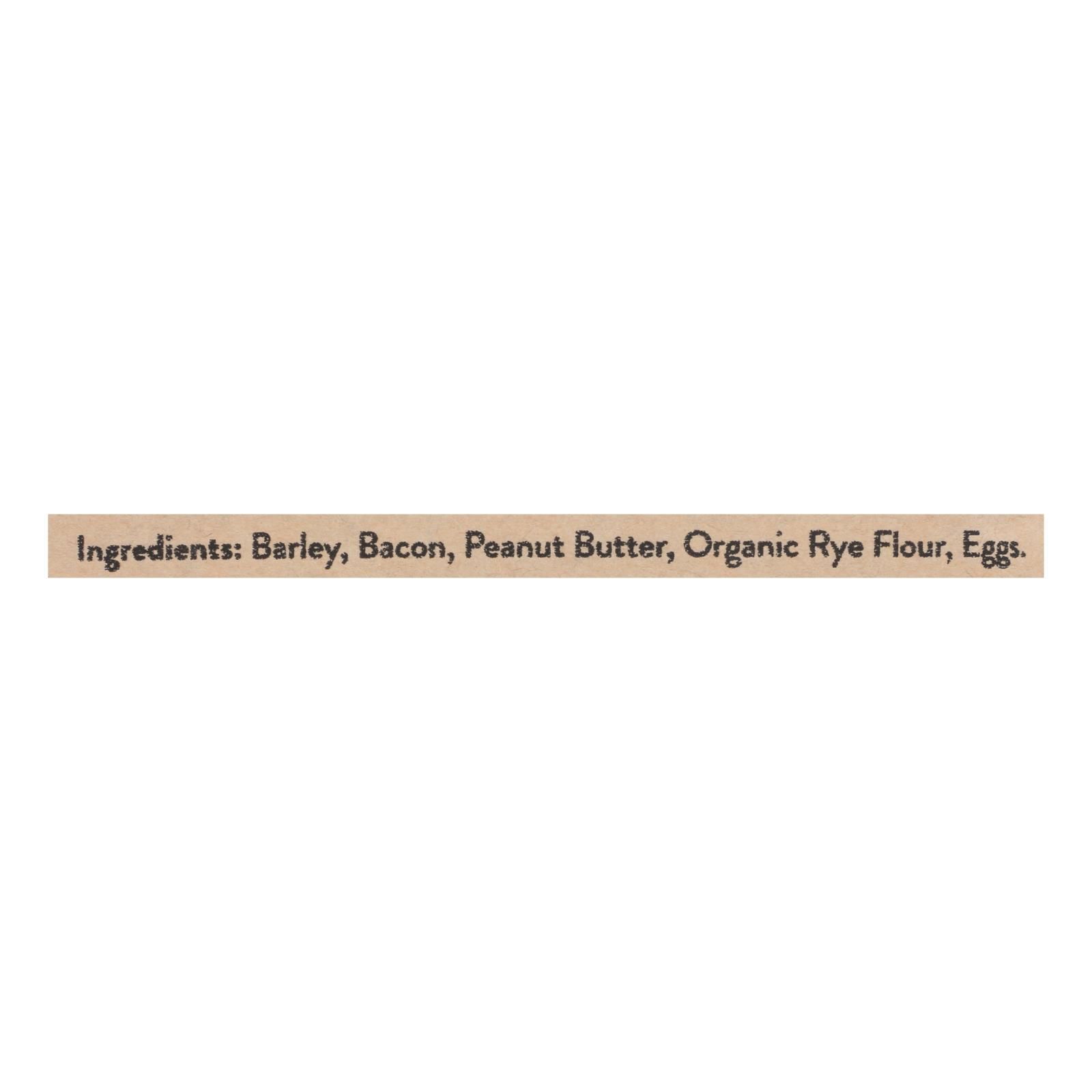 ingredients : barley;bacon;peanut butter;organic rye flour;eggs
